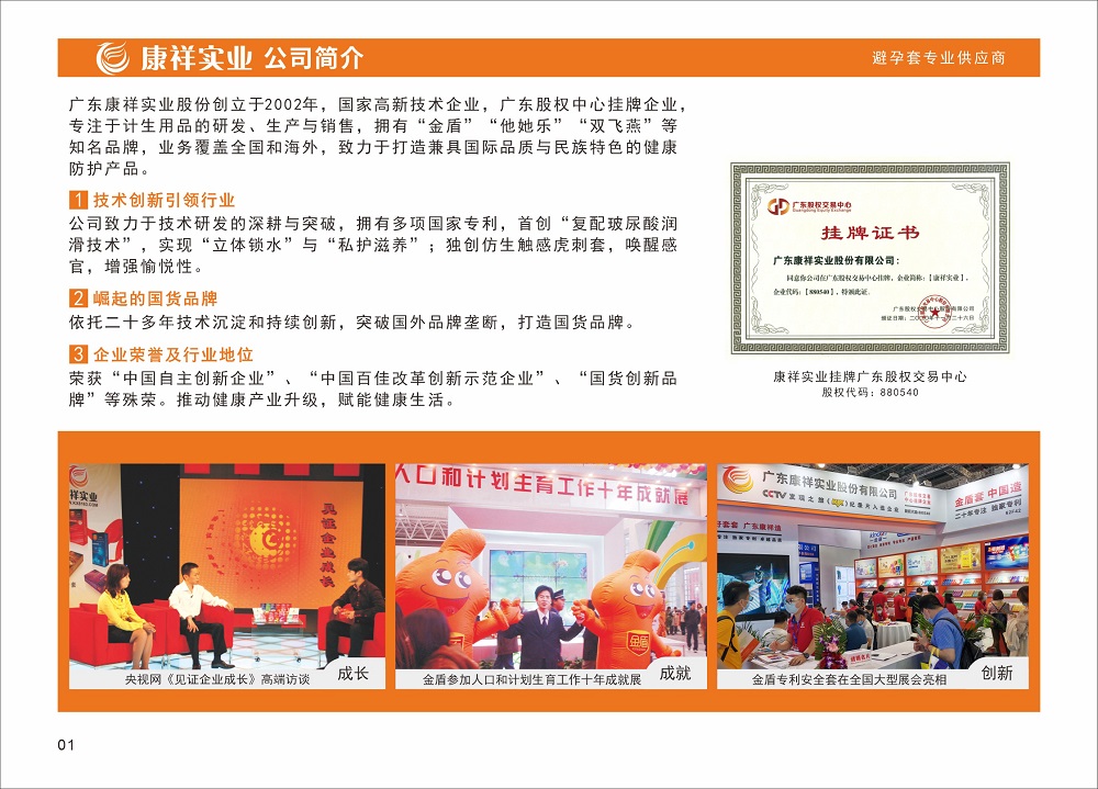 廣東康祥實業(yè)股份有限公司創(chuàng)立于2002年,總部位于廣州,國家高新技術(shù)企業(yè),廣東股權(quán)中心掛牌企業(yè)。專注于計生用品的研發(fā)、生產(chǎn)與銷售,旗下?lián)碛小?a href="http://www.kx8163_com.ncwjzd.com/jindunbiyuntao/" target="_blank" style="box-sizing: border-box; text-decoration-line: none; color: rgb(255, 145, 0);">金盾”“他她樂”“雙飛燕”等知名品牌,業(yè)務覆蓋全國和海外市場,致力于打造兼具國際品質(zhì)與民族特色的健康防護品牌。